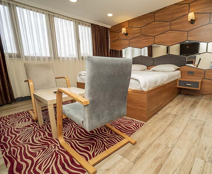 Odalarımız, konfor, şıklık ve pratik kullanımı bir araya getirerek konuklarımıza unutulmaz bir konaklama deneyimi sunmak üzere özenle tasarlanmıştır.